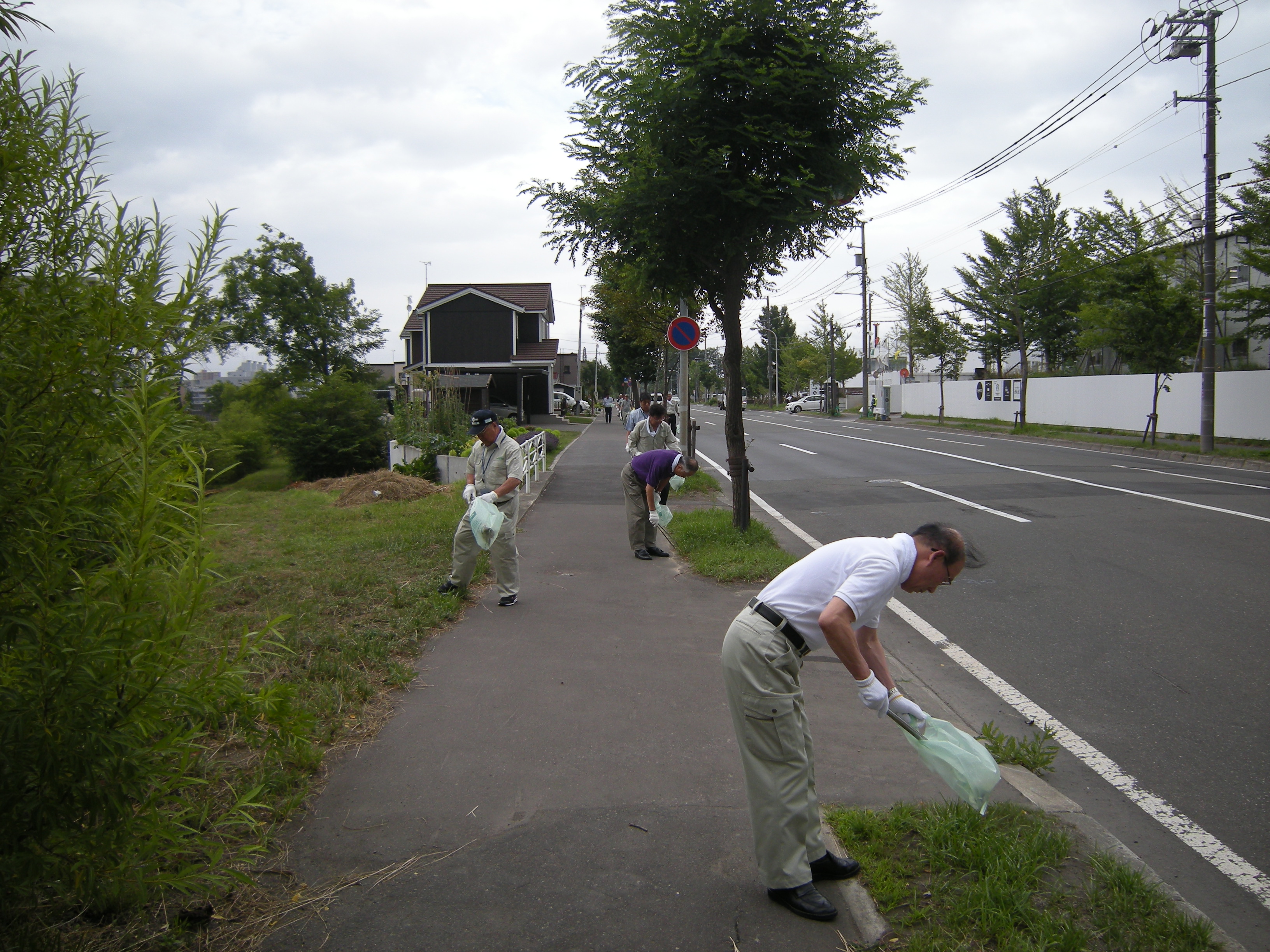 地域への感謝の気持ちとして、当社周辺及び道道西野白石線において社員全員でゴミ拾いを実施しました。
